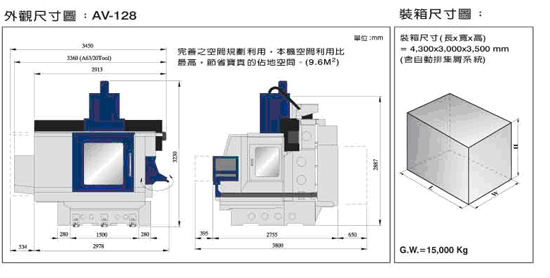 - 一体成型门柱及底座等主结构铸件以FC-300高级铸铁材质,结合力学原理结构强固,避震力强,改善热传导性能,增加高速切削之稳定性。