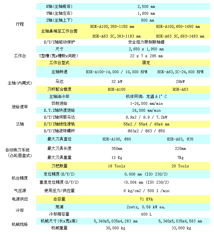 高速高精度鏜銑加工中心机   GTV - 2516/2516H