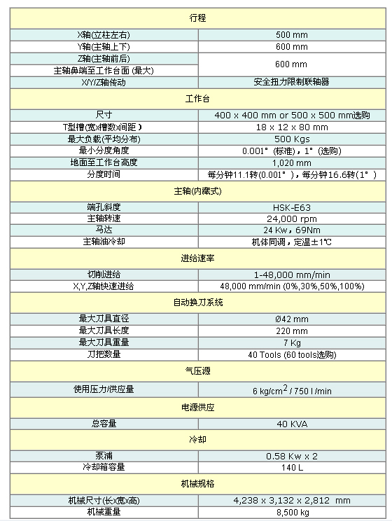 高速高精度五轴切削中心机