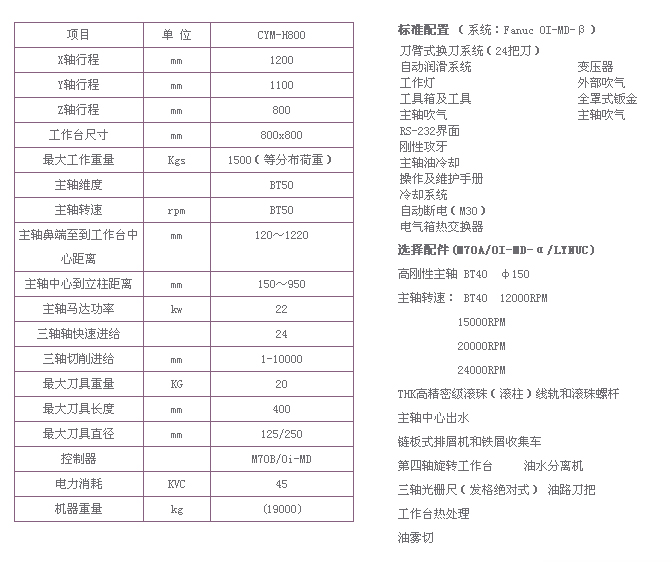 CYM-H800L卧式加工中心机