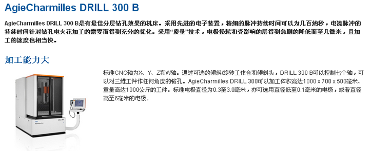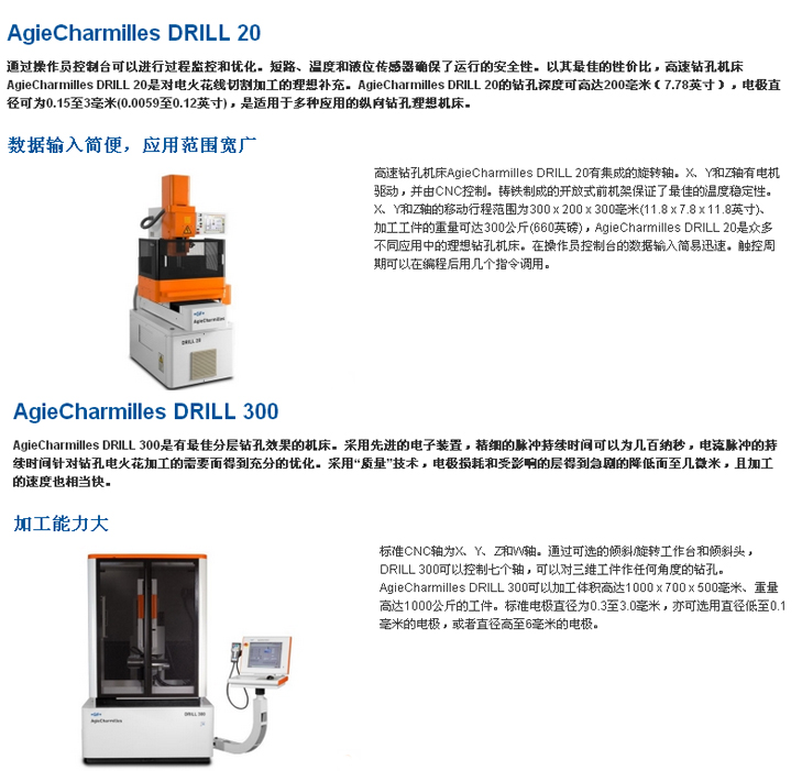 快速,简便,精确和可靠:采用瑞士GF加工方案集团的技术进行钻孔加工。Drill 20是为对硬质材料例如硬化钢或者硬质合金部件进行钻孔加工而设计的机床。其钻孔能力从直径为0.3至3.0毫米、深度为200毫米的钻孔。尤其简便易行的是,三轴(X、Y和Z轴)的数字控制可以对钻孔加工进行自动化加工的编程。