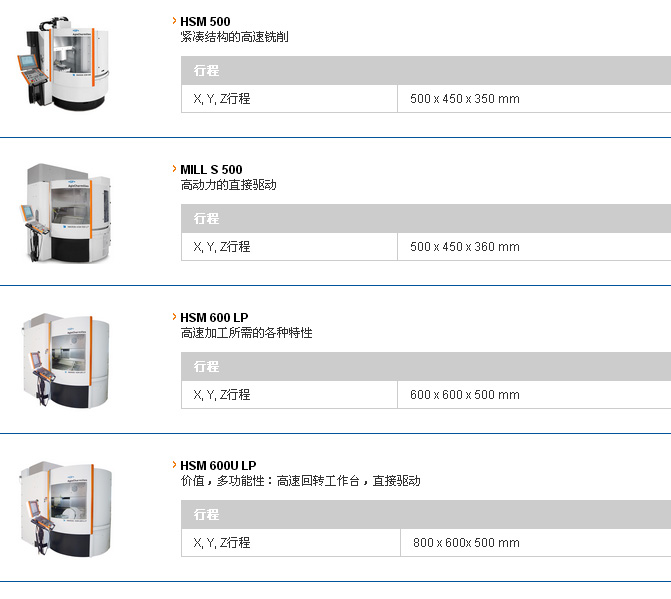 经验表明,特别是对加工工模具所需的小铣刀的应用条件,只有高于40'000 min-1的切削速度、高速进给和最充分的利用加速度,才能真正体现高速铣的优势。这些基本要求就需要调整机床的所有部件设计生产使之全部符合HSC技术要求。这是为什么米克朗HSM全系列机床从机床基础结构、高速主轴、数控系统、进给驱动、每个机床轴的机械结构和自动化控制系统,均以高速铣技术为原则进行设计制造的原因。