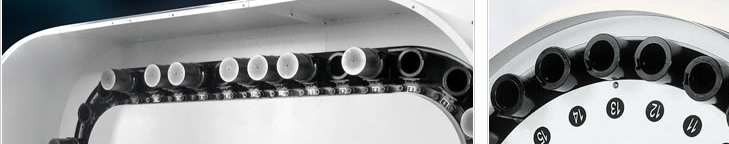 ▲刀臂式刀库有多样刀数选择: 24/30把刀(#40)及32把刀(#50)。