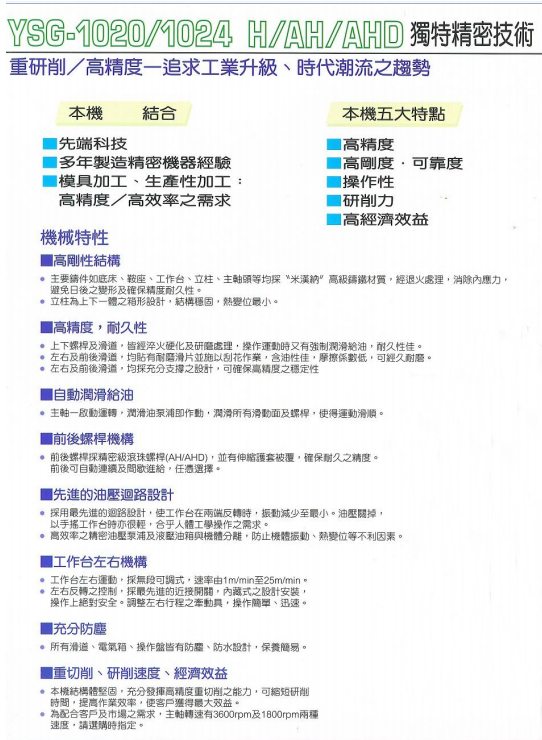◆先進的油壓系統︰工作台在兩端反轉時,振動減少至最小,低速時亦維持穩定之推力,可得較佳之研磨面。