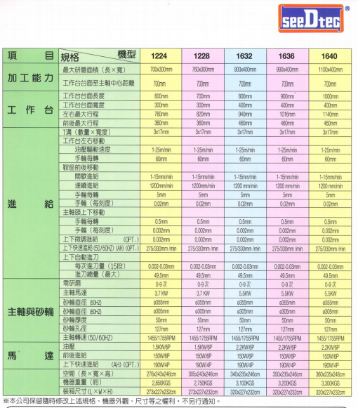 ◆前後軸︰前後螺桿採精密級滾珠螺桿,可自動連續(OPT.)及間歇進給。